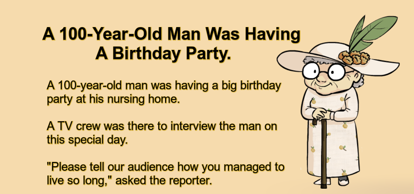“Please tell our audience how you managed to live so long,” asked the reporter.