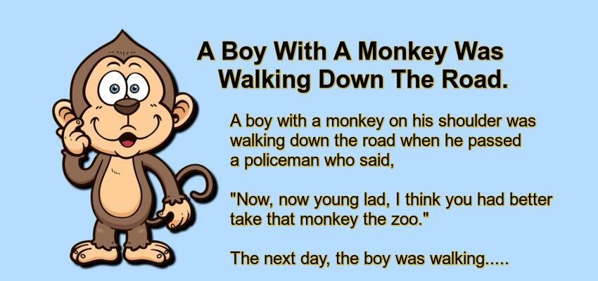 A boy with a monkey on his shoulder was walking down the road when he passed a policeman who said,