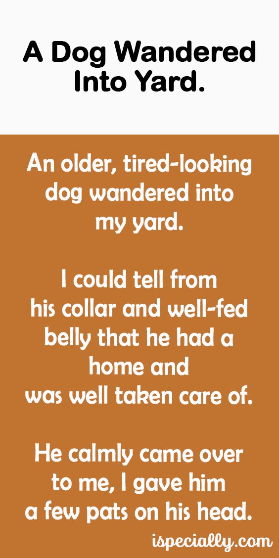 An older, tired-looking dog wandered into my yard.