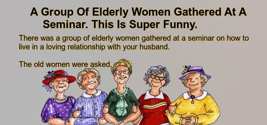 There was a group of elderly women gathered at a seminar on how to live in a loving relationship with your husband.