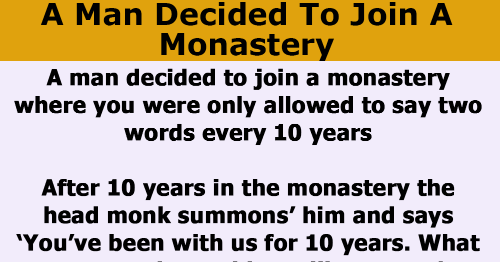 A man decided to join a monastery where you were only allowed to say two words every 10 years