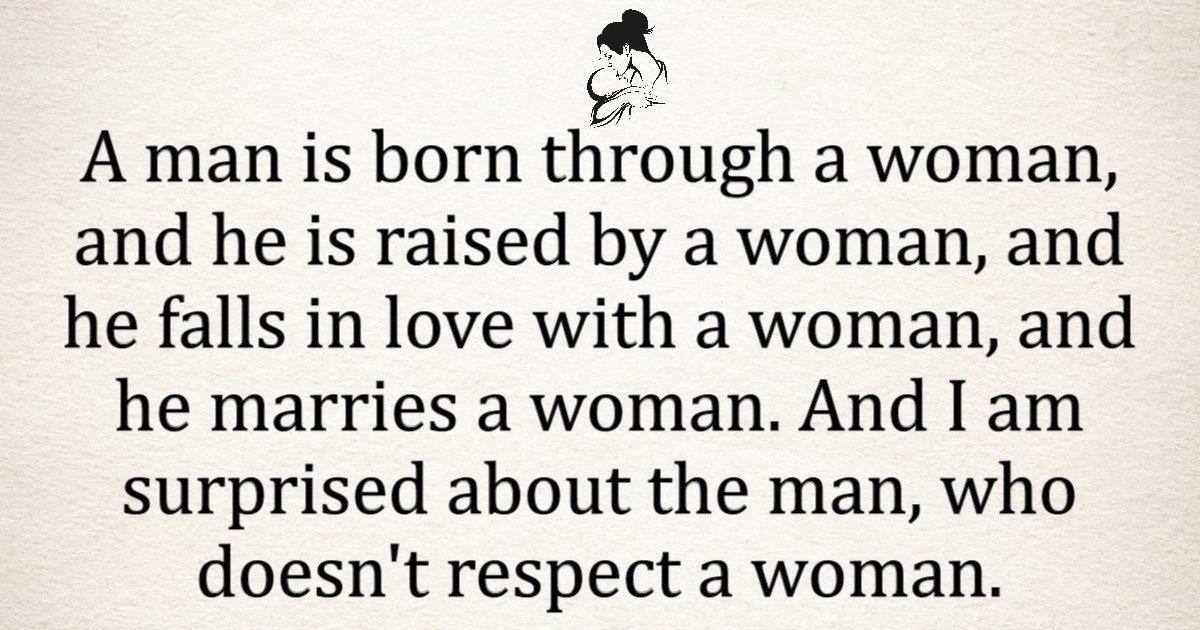 A man is born through a woman, and he is raised by a woman, and he falls in love with a woman, and he marries a woman. And I am surprised about the man, who doesn’t respect a woman.