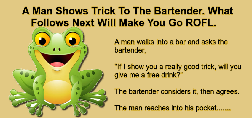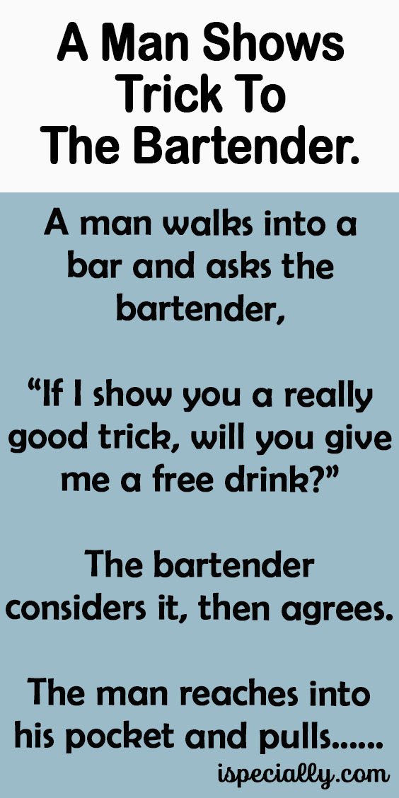 The bartender agrees, thinking that no trick could possibly be better than the first.