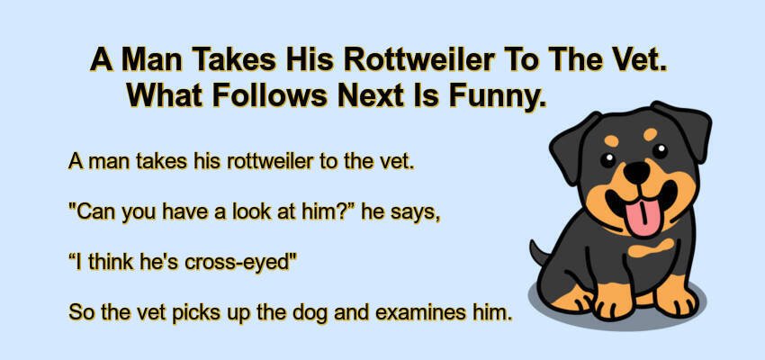 A man takes his rottweiler to the vet.