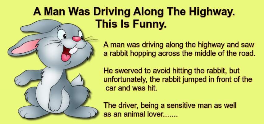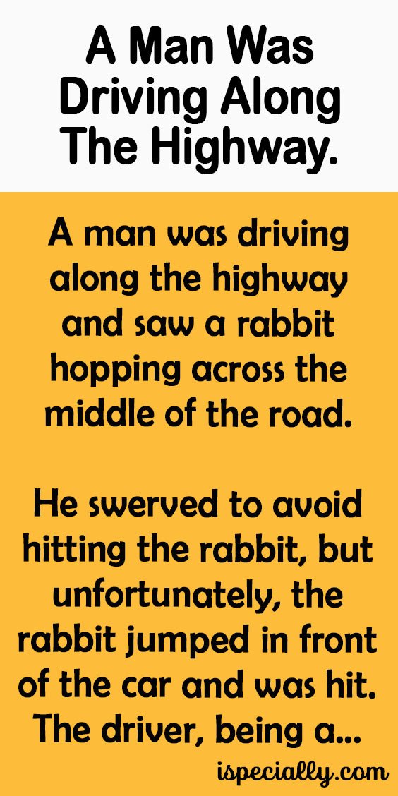 The driver, being a sensitive man as well as an animal lover, pulled over to the side of the road and got out to see what had become of the rabbit.