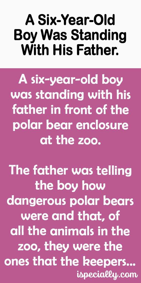 A six-year-old boy was standing with his father in front of the polar bear enclosure at the zoo.