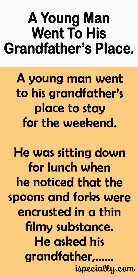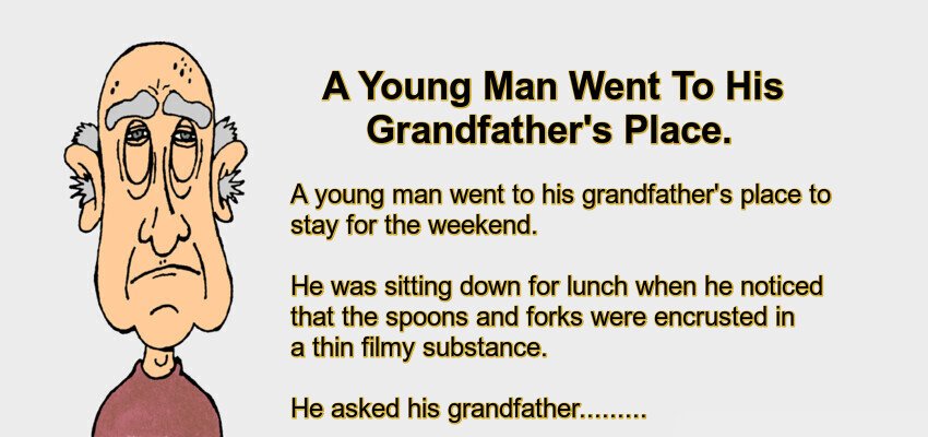 The man, a bit suspicious about his health, looked at his grandfather, then at his plate and started eating.