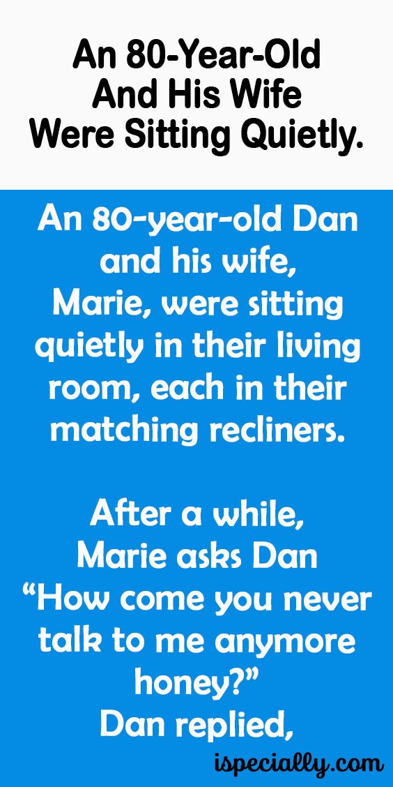 An 80-year-old Dan and his wife, Marie, were sitting quietly in their living room, each in their matching recliners.