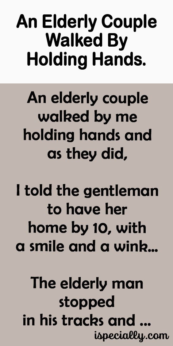 An elderly couple walked by me holding hands and as they did, I told the gentleman to have her home by 10, with a smile and a wink…