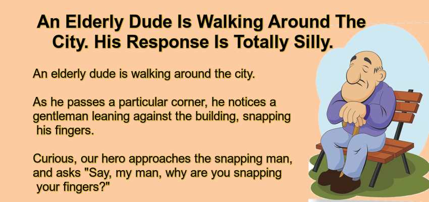 An elderly dude is walking around the city. As he passes a particular corner, he notices a gentleman leaning against the building, snapping his fingers.