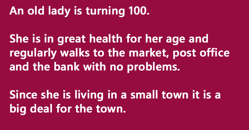 On her birthday she is visited by the mayor who presents her with a badge honouring her as the oldest person in the town.