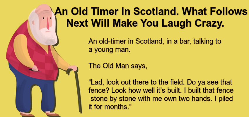 An old-timer in Scotland, in a bar, talking to a young man.