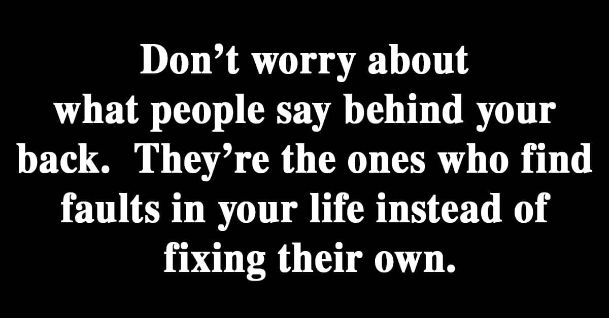 Don’t worry about what people say behind your back. They’re the ones who find faults in your life instead of fixing their own.