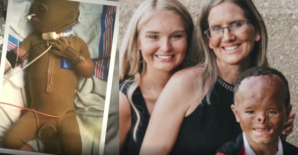 A baby with terrible burns on his face was finally adopted 7 years later