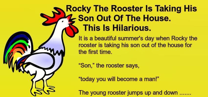 Rocky The Rooster Is Taking His Son Out Of The House. –