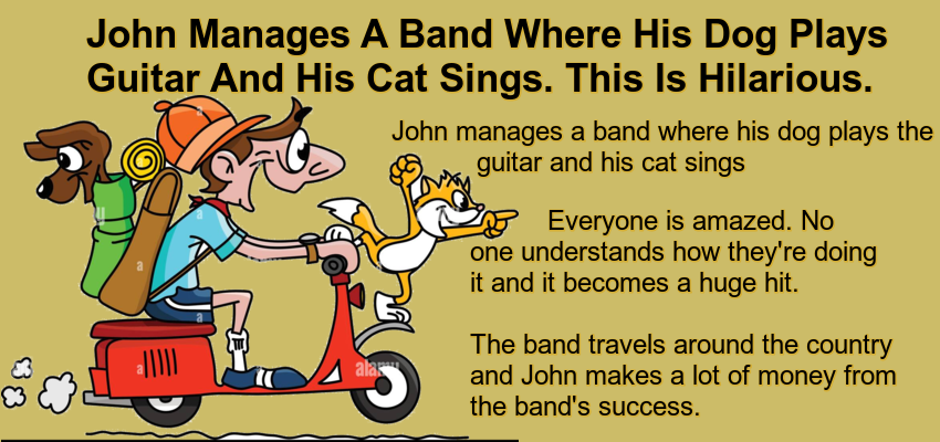 John Manages A Band Where His Dog Plays Guitar And His Cat Sings. –