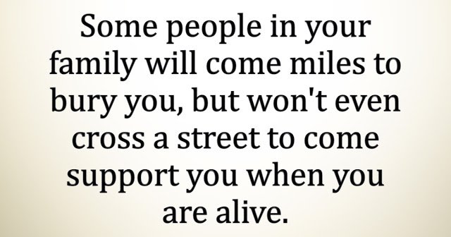 Some people in your family will come miles to bury you, but won’t even cross a street to come support you when you are alive.