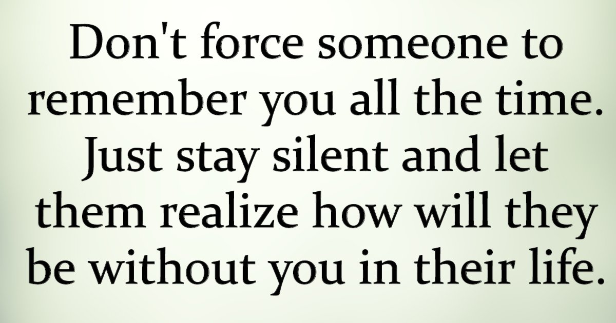 Don’t force someone to remember you all the time. Just stay silent and let them realize how will they be without you in their life.