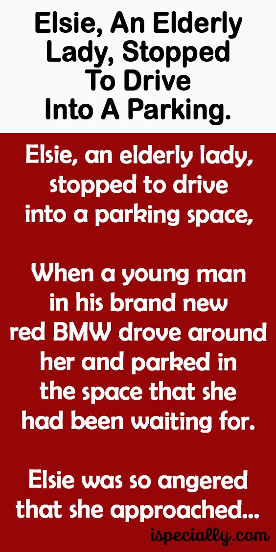 Elsie, an elderly lady, stopped to drive into a parking space,