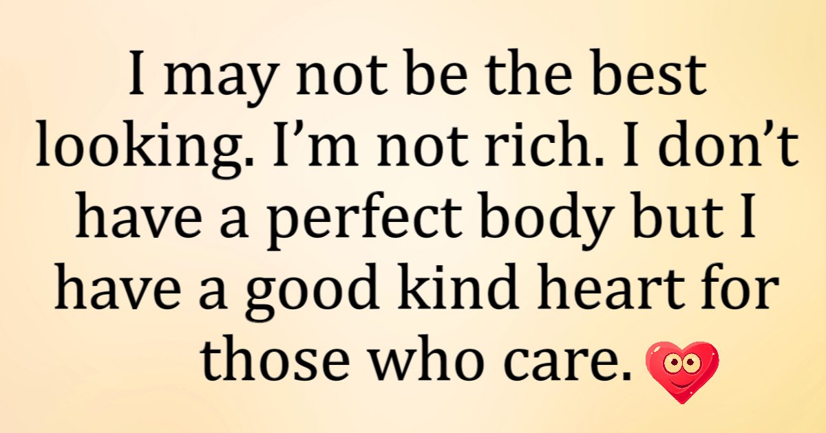 I may not be the best looking. I’m not rich. I don’t have a perfect body but I have a good kind heart for those who care.