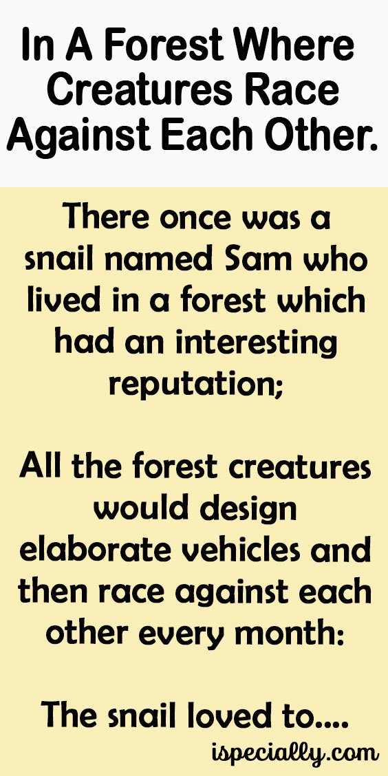 There once was a snail named Sam who lived in a forest which had an interesting reputation;