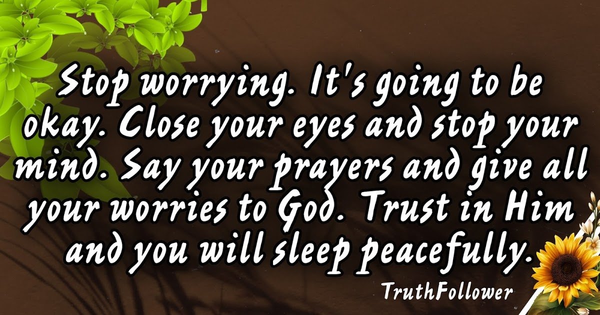 Stop worrying. It’s going to be okay. Close your eyes and stop your mind. Say your prayers and give all your worries to God. Trust in Him and you will sleep peacefully.