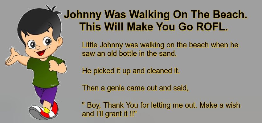 Little Johnny was walking on the beach when he saw an old bottle in the sand.