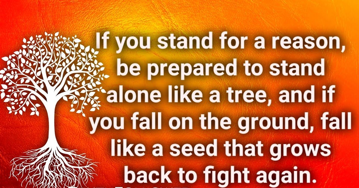 If you stand for a reason, be prepared to stand alone like a tree, and if you fall on the ground, fall like a seed that grows back to fight again.