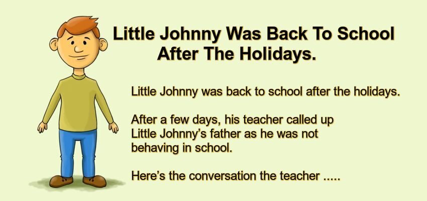 After a few days, his teacher called up Little Johnny’s father as he was not behaving in school.