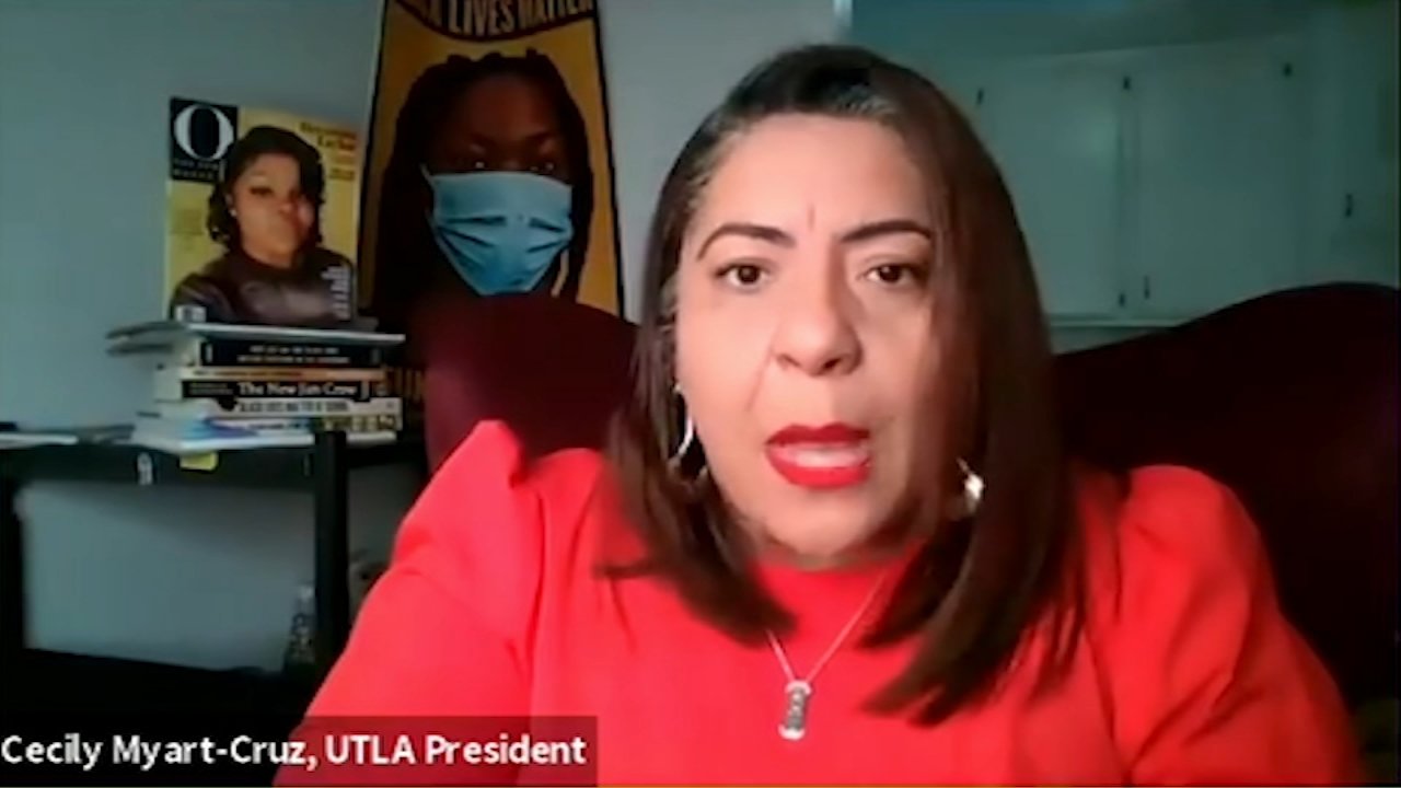For LAUSD in-person teaching to resume, United Teachers Los Angeles is demanding L.A. County move out of the state’s purple tier, returning staff must be vaccinated or have access to vaccines and coronavirus safety measures must be in place on campus.