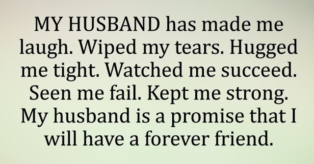 MY HUSBAND has made me laugh. Wiped my tears. Hugged me tight. Watched me succeed. Seen me fail. Kept me strong. My husband is a promise that I will have a forever friend.
