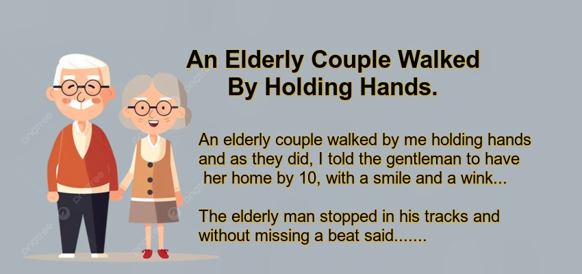 An Elderly Couple Walked By Holding Hands.