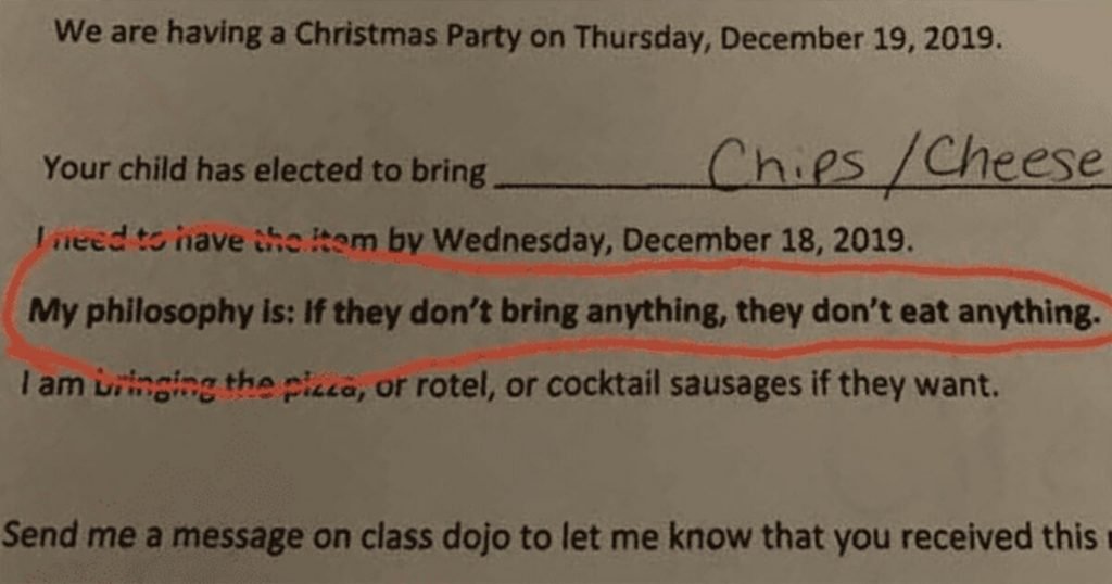Teacher’s policy says kids who don’t bring food to Christmas party can’t eat December 23, 2019 by admin