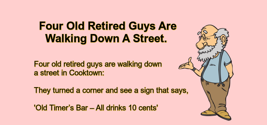 Four Old Retired Guys Are Walking Down A Street.