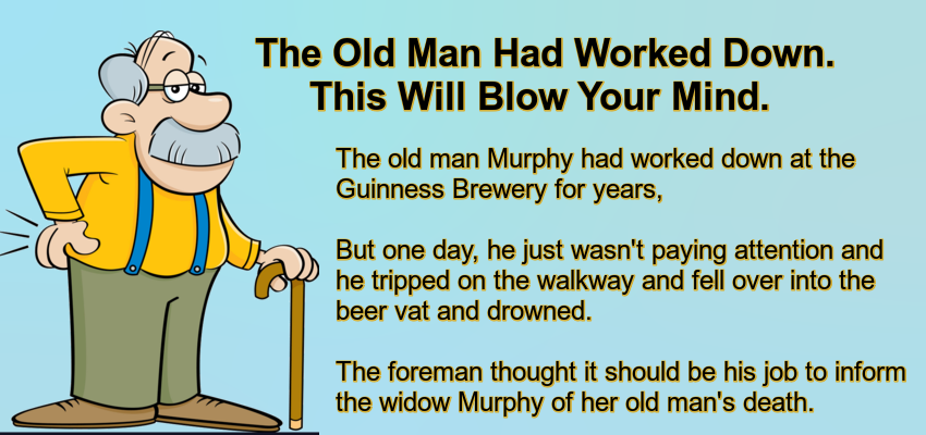 “I’m sorry to tell you, but poor old Murphy passed away at work today when he fell into the Guinness vat and drowned. “