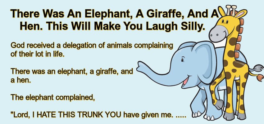 There was an elephant, a giraffe, and a hen.
