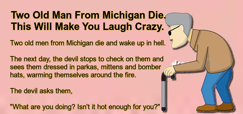 The next day, the devil stops to check on them and sees them dressed in parkas, mittens and bomber hats, warming themselves around the fire.
