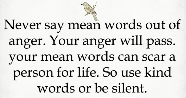 Never say mean words out of anger. Your anger will pass. But your mean words can scar a person for life. So use kind words or be silent.