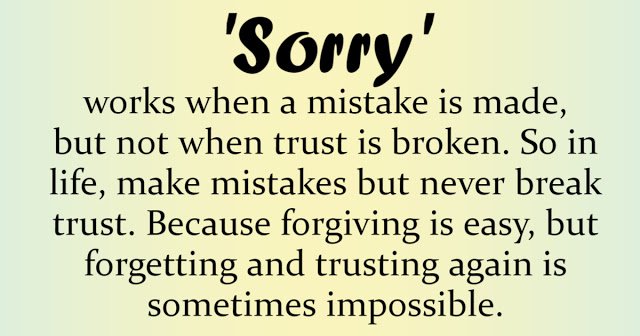 Sorry works when a mistake is made, but not when trust is broken. So in life, make mistakes but never break trust. Because forgiving is easy, but forgetting and trusting again is sometimes impossible.