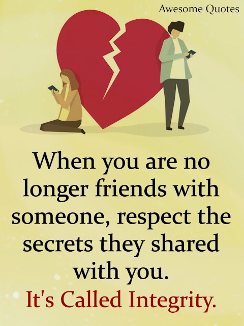 When you are no longer friends with someone, respect the secrets they shared with you. It’s Called Integrity.